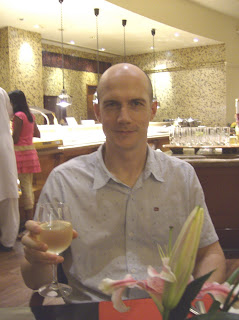 I am sad to report that it finally happened...I succumbed to the mean old food goblins and got sick on Monday...and the worst part was that I was at the nicest hotel in town...The Taj Krishna - Sunday brunch, which at the time seemed fantastic...This was my first day off and I had done a little shopping (see sandals below) and then gone to the hotel for a nice brunch and then a pedicure ($13 dollars and the best one I've ever had - the glass of champagne I had with brunch was $18 dollars...go figure!)